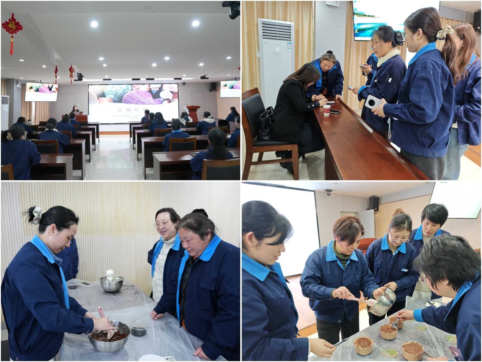 随后,大家参与了慕斯蛋糕DIY制作活动。在烘焙师的耐心指导下,女职工都化身为甜点和美好的创作者,大家一边动手制作,一边交谈、品尝茶点,分享生活中的点滴趣事,体验创作的乐趣与成就感。